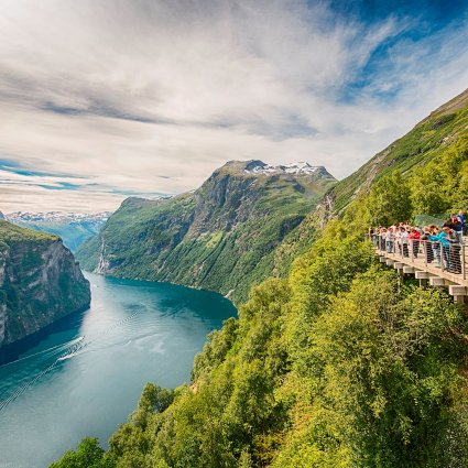 Erkunden Sie den Geirangerfjord, eine UNESCO-Welterbestätte. Erleben Sie einige der spektakulärsten Landschaften Norwegens und genießen Sie einen Besuch in der Jugendstilstadt Ålesund.