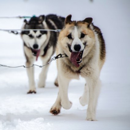 Genießen Sie eine Husky-Schlittenfahrt durch die malerische Landschaft und erleben Sie das wahre Gefühl der Wildnis während Ihrer adrenalinvollen Fahrt!