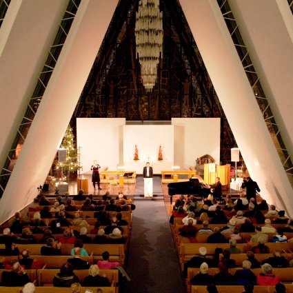 Besichtigen Sie das beeindruckende Innere der arktischen Kathedrale von Tromsø und erleben Sie die atemberaubende Akustik der Kathedrale.