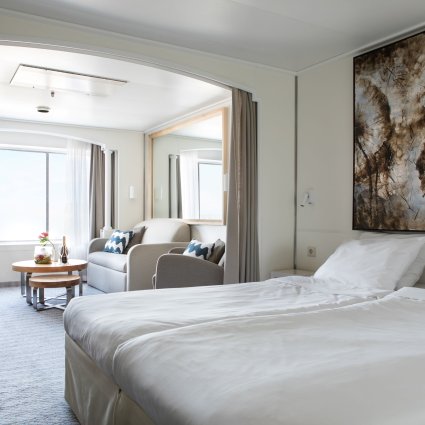 Bei Buchung der Reisekategorie GOLD, haben Sie die Möglichkeit, von einer Standard-Kabine mit Meerblick (Außenkabine) zu einer Commodore-Kabine zu upgraden.