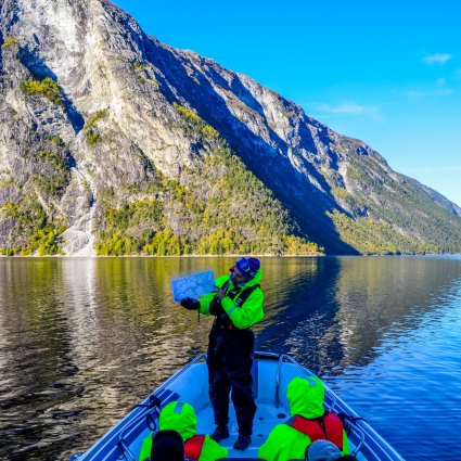 Die Tour beginnt mit einer Speed-Boot Fjordsafari im Herzen des Nærøyfjords. Hier bekommen Sie den großen Wasserfall Sagfossen zu sehen. Am Aurlandfjord legt das Boot in Skjerdal an und Sie wandern zum Ziegenbauernhof nach Leim. Vom Bootsanleger führt Sie ein kleiner Weg nach oben Richtung alter Straße, von welcher Sie einen großartigen Ausblick über den Fjord haben. Auf Ihrer Wanderung haben Sie die Möglichkeit Ausblicke auf verschiedene spektakuläre Wasserfälle zu genießen. In Leim besuchen Sie den Ziegenbauernhof und lernen mehr über die Produktion des traditionellen Ziegenkäses. Zum Mittagessen, welches auf der Terasse serviert wird, haben Sie die Möglichkeit Ziegenkäse zu probieren. Der Hauptgang besteht aus lokalen und selbst angebauten Produkten. Bevor Ihre Wanderung zurück zum Bootsanleger und Richtung Flåm geht, haben Sie genug Zeit die Aussicht zu genießen und die Ziegen sehen.
