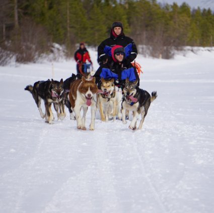 Die Hundeschlittenfahrt dauert ca. 1 Stunde und Sie fahren zu zweit, ein Fahrer und ein Passagier (Sie können die Position auf halbem Weg wechseln). Bitte teilen Sie uns mit, ob Sie nur als Passagier mitfahren möchten, dann können wir dies arrangieren.