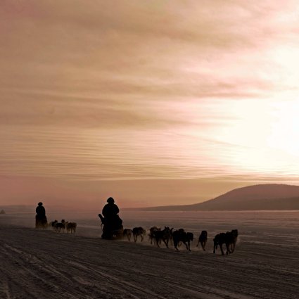 Sie sitzen gemütlich auf dem mit Rentieren bespannten Schlitten, während die Huskys durch den Schnee und die arktische Wildnis zu Ihrem nächsten Abenteuer rasen.