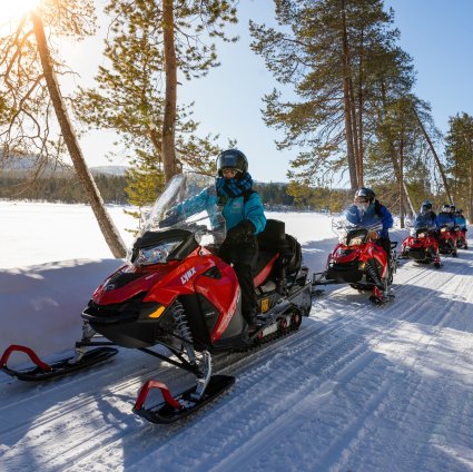 Sie brauchen keine Vorkenntnisse, um ein Schneemobil zu fahren. Alles, was Sie brauchen, ist eine gute Fitness und einen gültigen Führerschein. Sie teilen sich das Schneemobil, können aber auch alleine (gegen Aufpreis) fahren, ihrem Guide folgend.