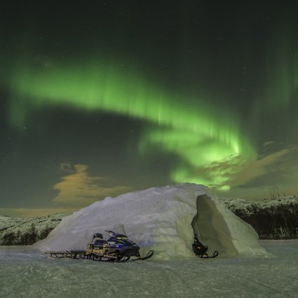 Angekommen am Ausgangspunkt der Exkursion bekommen Sie eine kurze Einführung in dem Umgang mit dem Schneemobil und außerdem warme Kleidung und einen Helm. Auf jedem Schneemobil fahren zwei Personen und die Fahrer können sich bei jeder Gelegenheit abwechseln. Auf dem Weg gibt es kurze Fotostopps um dieses einmalige Erlebnis festzuhalten. Dies ist ein auβergewöhnliches Abenteuer in arktischem Klima, falls Sie Glück haben, sehen Sie sogar die Nordlichter auf Ihrer Tour.