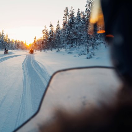 Sie werden in Kakslauttanen abgeholt, mit Thermo-Kleidung ausgestattet und bekommen Anweisungen, wie das Schneemobil gefahren wird. Sie fahren das Schneemobil als Paar, eine Person fährt und die andere sitzt hinten als Passagier. Sie können auf halber Strecke tauschen. Nach dem Ausflug werden Sie ein Heißgetränk und einen finnischen Snack genießen, bevor Sie nach Kakslauttanen zurückkehren.