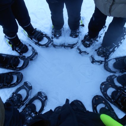 Transport, Betreuung, Schneeschuhausstattung, warme Kleidung, heißer Saft und Snack.