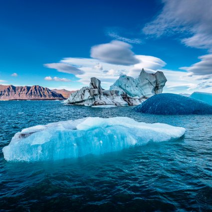 Genießen Sie eine Bootsfahrt auf der Gletscherlagune, fahren Sie dicht an großen Eisbergen vorbei und erleben Sie die Ruhe und Schönheit dieses einzigartigen Ortes. Die Lagune entstand, als der Gletscher Breiðarmerkurjökull langsam schmolz und schwimmende Eisberge in vielen Formen und Größen zurückließ. Unterwegs kommen Sie an wunderschönen Landschaften vorbei, darunter Islands höchster Berg, der Hvannadalshnjúkur, und weite schwarze Sandebenen in der Nähe von Skaftafell.