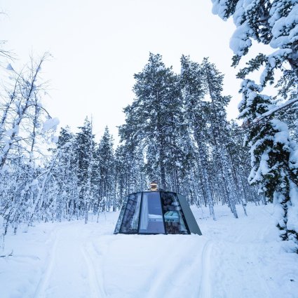 Genießen Sie ein spektakuläres Naturerlebnis im Komfort Ihrer eigenen Glas-Iglu Aurora-Hütte, gehen Sie mit Blick auf den Sternenhimmel schlafen und wachen Sie mit der atemberaubenden Aussicht auf die umliegende Natur in Muonio in Finnisch-Lappland auf.
