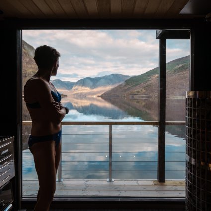 Inspiriert von den finnischen Traditionen wird diese Sauna sicherlich ein entspannendes Erlebnis sein. Nehmen Sie anschließend ein erfrischendes Bad im Fjord und lassen Sie Ihren Körper abkühlen.