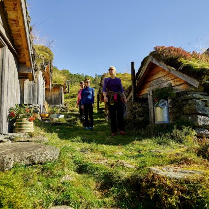 Diese Wanderung mit insgesamt 220 Höhenmetern bietet Ihnen die perfekte Gelegenheit, sowohl fantastische Ausblicke zu genießen als auch etwas über das Leben auf den Bauernhöfen am Hjørundfjorden zu erfahren.