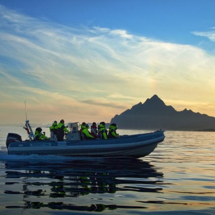 Havila-Landausflug ab Svolvær: Nehmen Sie an einer Schlauchbootsafari auf den Lofoten teil und beobachten Sie die majestätischen Seeadler. Genießen Sie die Lagune und einen Besuch in Skrova.