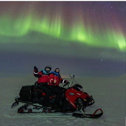 Das Schneemobilfahren ist nicht nur eine aufregende Art zu reisen: Es ermöglicht Ihnen, Orte zu erreichen, die weit von Lichtverschmutzung entfernt sind, was Ihre Chancen erhöht, die Nordlichter in voller Pracht zu betrachten. Ihr Guide wird Sie über die einzigartige Naturlandschaft informieren und Fotos machen, während Sie ein warmes Getränk und einen Snack genießen.