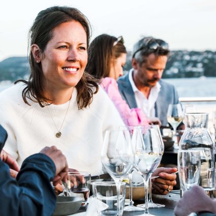 Die Panoramafenster des Außendecks und der Lounge im Innenbereich, garantieren Ihnen eine gute Sicht von jedem Platz. Auf dem Rückweg können Sie den Blick auf Oslos Skyline genießen, während Sie entlang einiger der berühmtesten Sehenswürdigkeiten, wie etwa das Opernhaus und die Festung Akershus, fahren.