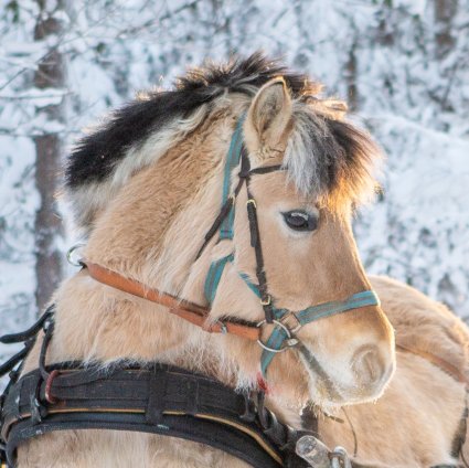 Erleben Sie atemberaubende Winterlandschaften direkt vor Ihrer Haustür im Apukka Resort, etwas außerhalb von Rovaniemi. Machen Sie es sich bei Einbruch der Dunkelheit im Pferdeschlitten bequem und bewundern Sie die ruhige Landschaft nahe dem Polarkreis.