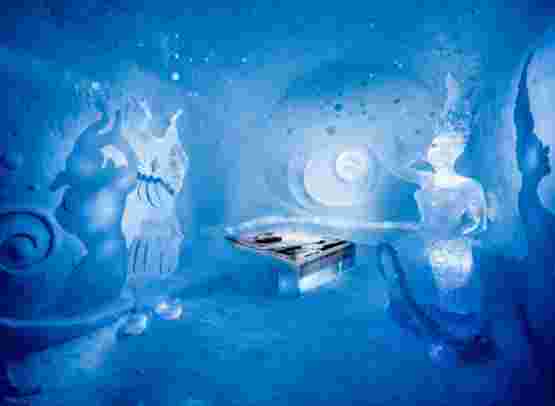 - Übernachtung in einer “Art Suite Winter” (Winter-Kunstsuite) im Eishotel in Jukkasjärvi.